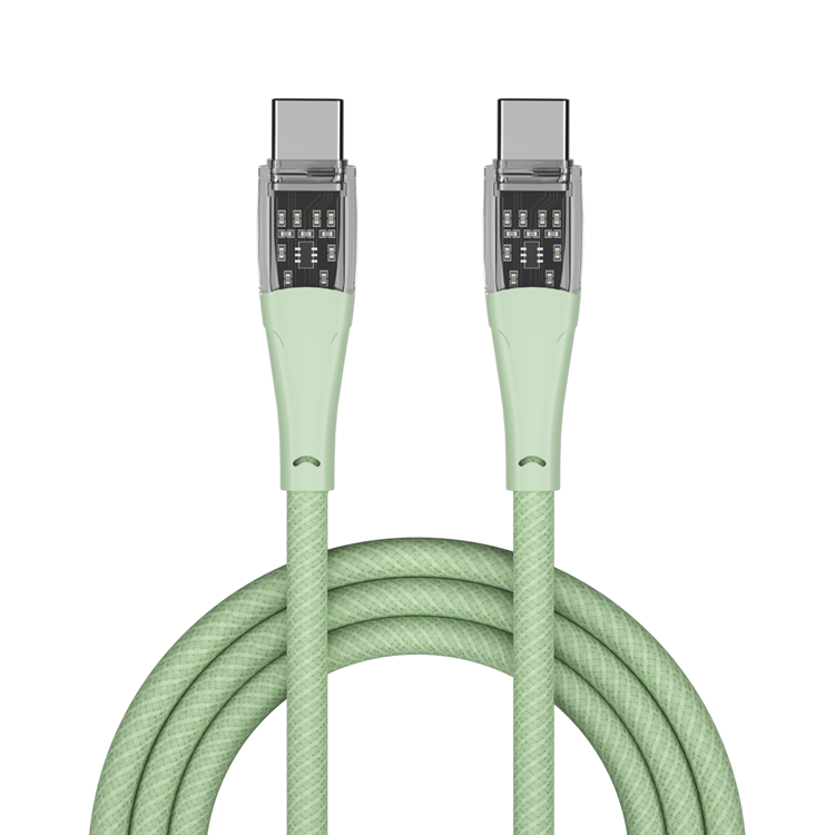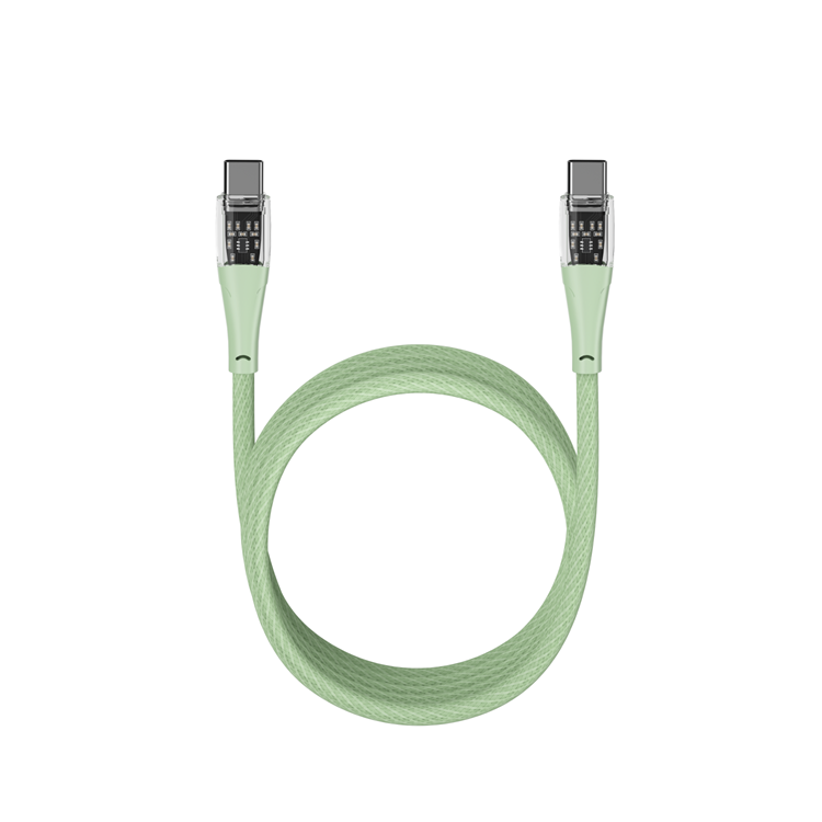 QUALO Transparent USB-C till USB-C Kabel 1.5m är den perfekta lösningen för dig som vill ha snabb laddning, stabil överföring och en modern design. Den transparenta nylonflätan i en fräsch grön ton ger kabeln ett unikt utseende och extra skydd mot slitage och mekaniska skador. Med en längd på 1,5 meter får du frihet att använda dina enheter bekvämt – hemma, på kontoret eller på resande fot.