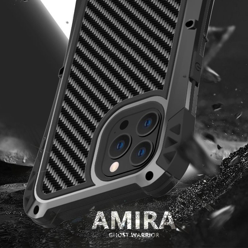 R-JUST AMIRA iPhone 13 Pro Skal Aluminium + Silikon + Glas - Svart