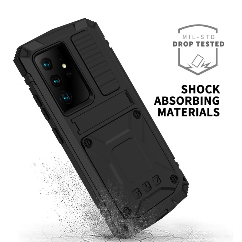 R-JUST Galaxy S21 Ultra 5G skal erbjuder en kombination av stil och skydd. Tillverkat av högkvalitativt TPU och metall, ger det utmärkt skydd mot stötar, vatten och damm. Med en inbyggd kickstand kan du enkelt njuta av handsfree-visning.