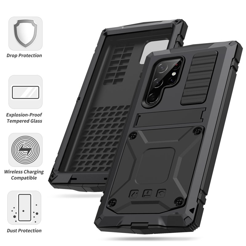 R-JUST Galaxy S22 Ultra 5G Skal Metall+Silicone Svart