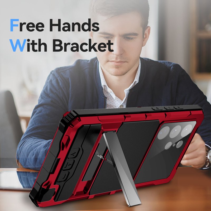 R-JUST Galaxy S23 Ultra Skal är det perfekta skyddet för din telefon. Med en kombination av hållbara material erbjuder detta skal både stil och funktionalitet. Det skyddar din enhet mot stötar, vatten och damm, samtidigt som det ger en praktisk lösning för handsfree-visning.