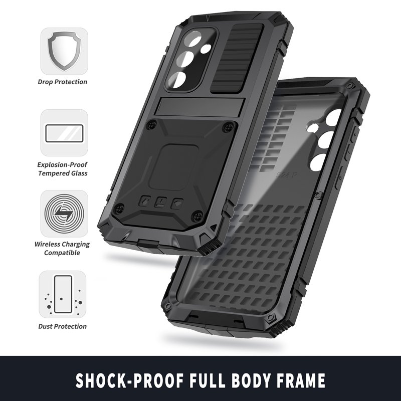 R-JUST Galaxy S24+ Skal med Kickstand och Skärmskydd - Svart
