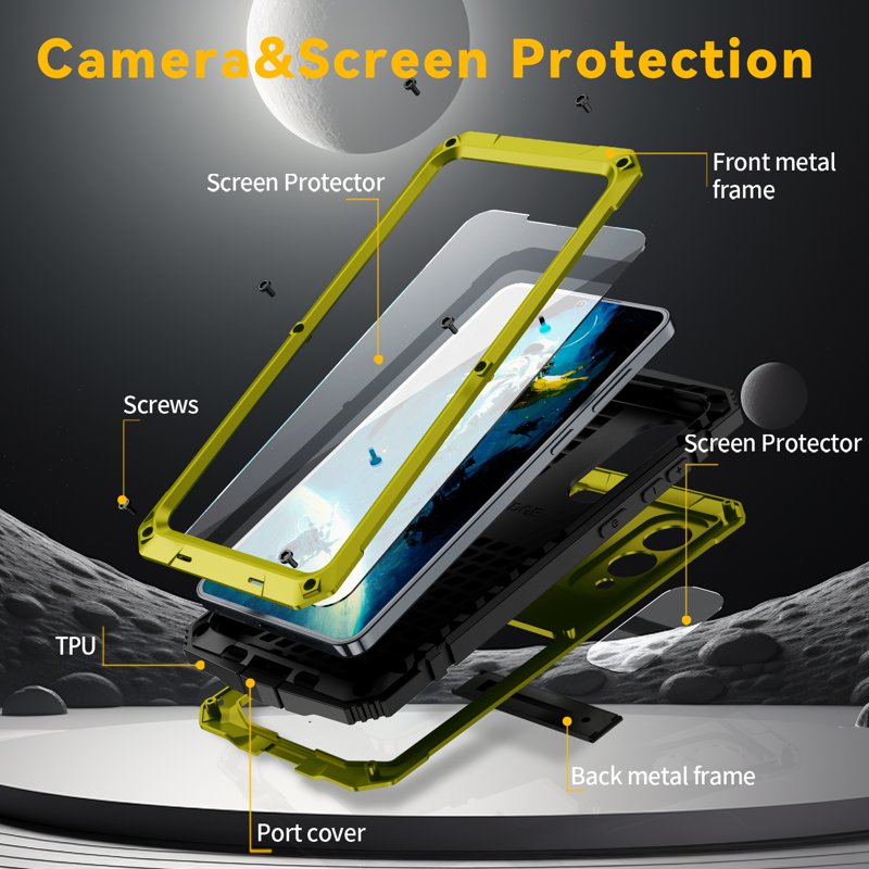 - Hållbar konstruktion - Tillverkat av PC, silikon, härdat glas och metall för långvarigt skydd.