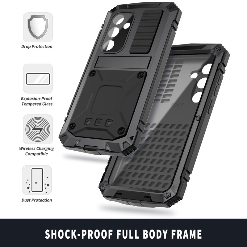 R-JUST Galaxy S25+ Skal PC + Silikon + Metall Ställ - Svart