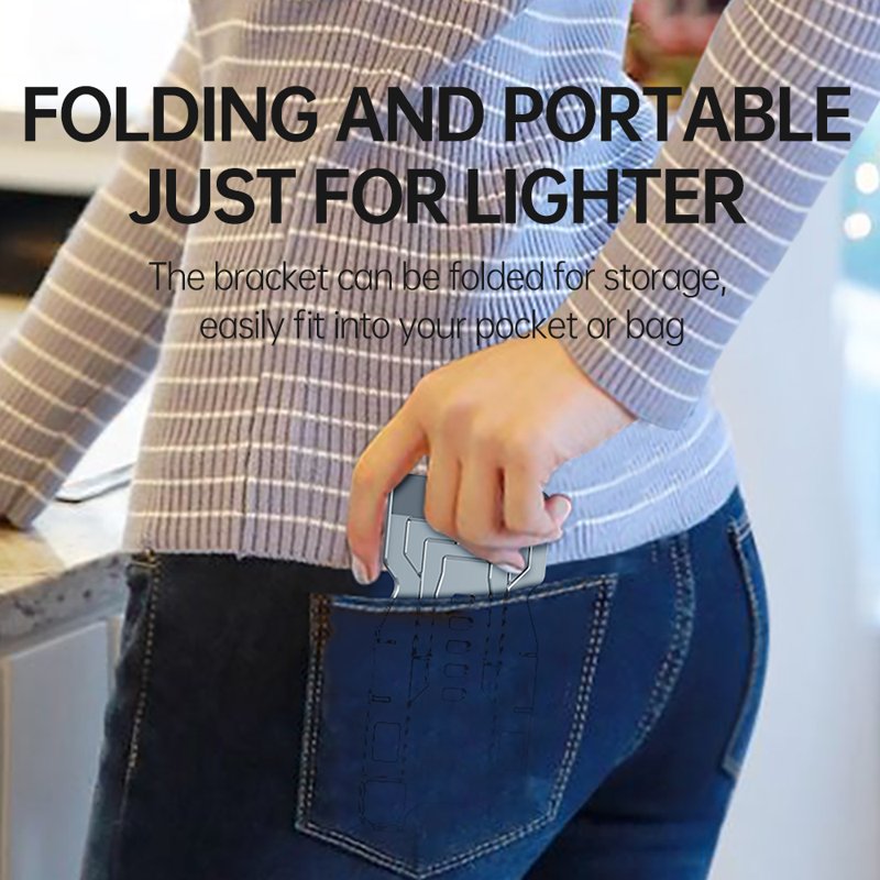 R-JUST HZ06 är en universell telefonhållare som kombinerar stil och funktionalitet. Den är ultratunn och lätt, vilket gör den enkel att ta med sig. Med sin metalliska yta och smarta design erbjuder den stabilitet och komfort för din telefonanvändning.