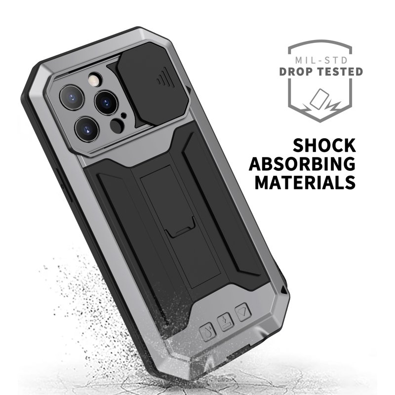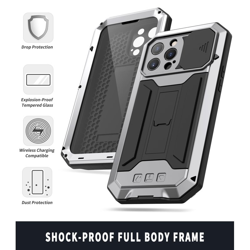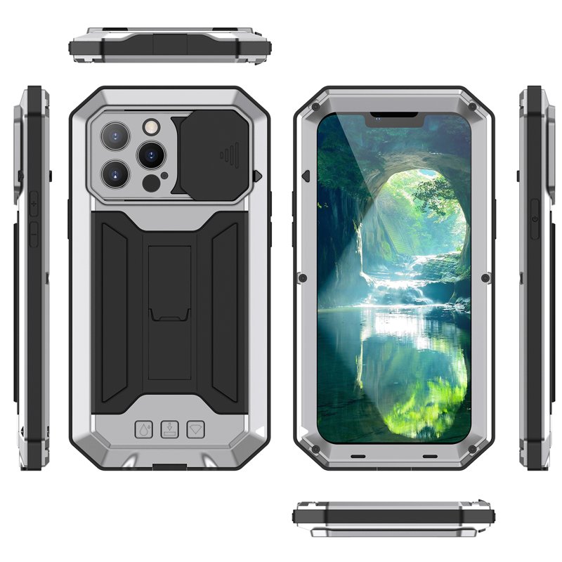 R-JUST iPhone 13 Pro Max Skal Metallram Vattentålig Silver