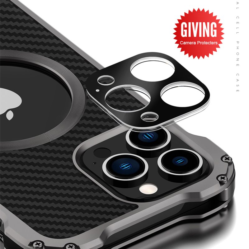 R-JUST iPhone 13 Pro Skal erbjuder överlägsen skydd för din telefon. Tillverkad av högkvalitativ aluminiumlegering och kolfiber, ger detta skal 360-graders skydd. Den avtagbara designen gör det enkelt att montera och demontera. Med effektiv ventilation och värmeavledning håller det din telefon säker och sval.