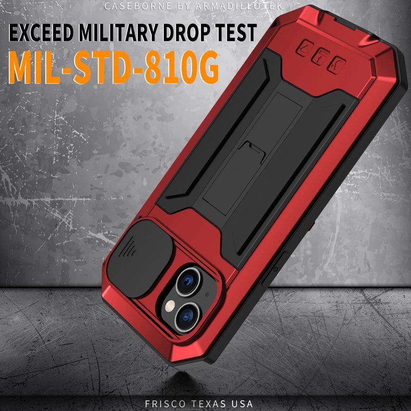 R-JUST iPhone 14 Plus Skal med Kickstand Röd Silicone Metall