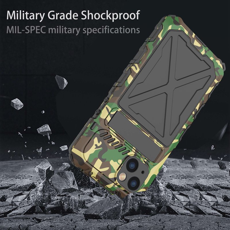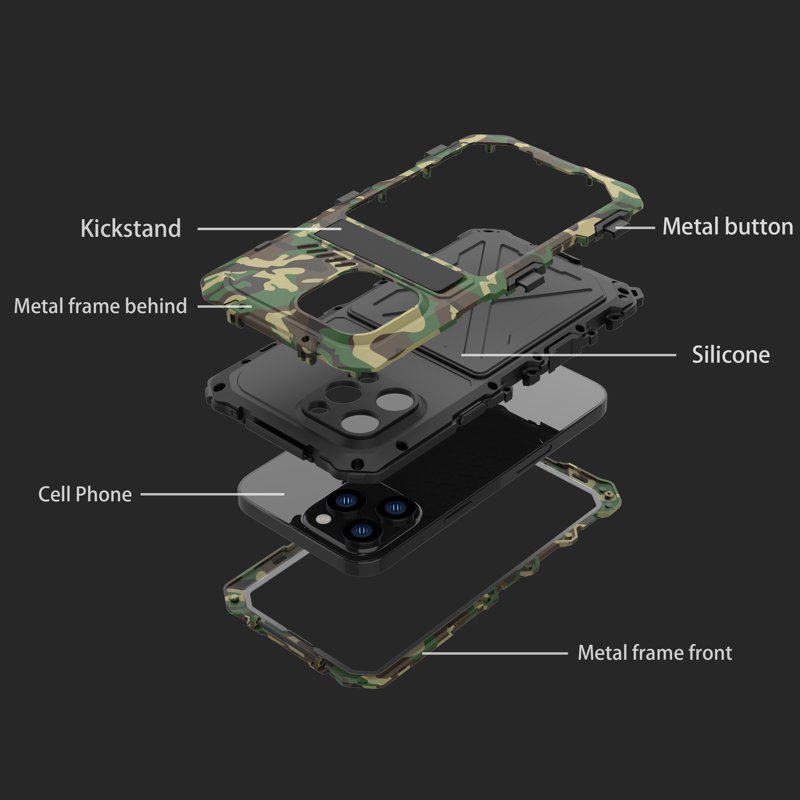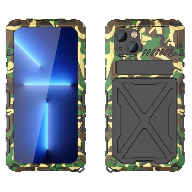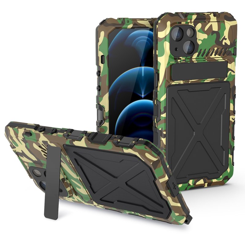 R-JUST iPhone 14 Plus Skal Silikon + Metall Stötabsorberande Kamouflage
