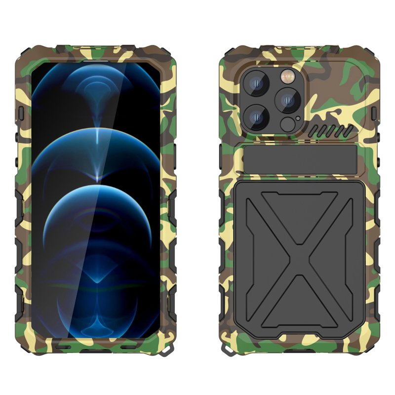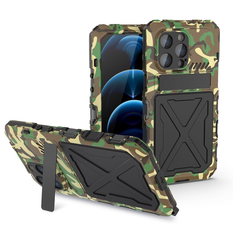R-JUST iPhone 14 Pro Max Skal, Silikon + Metall, Kamouflage