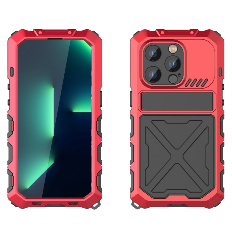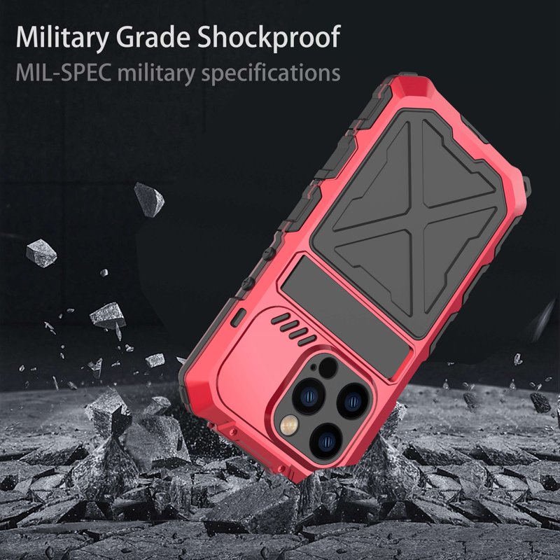 R-JUST iPhone 14 Pro Skal, Stöttålig Silikon + Metall, Röd
