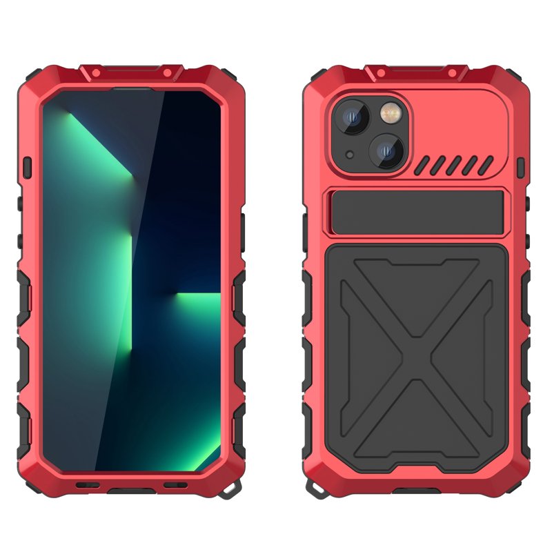 R-JUST iPhone 14 Skal Kickstand Silikon + Metall Röd
