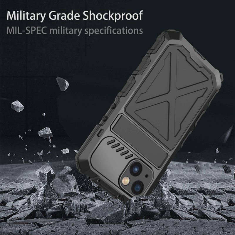 R-JUST iPhone 14 Skal Kickstand Silikon + Metall Svart