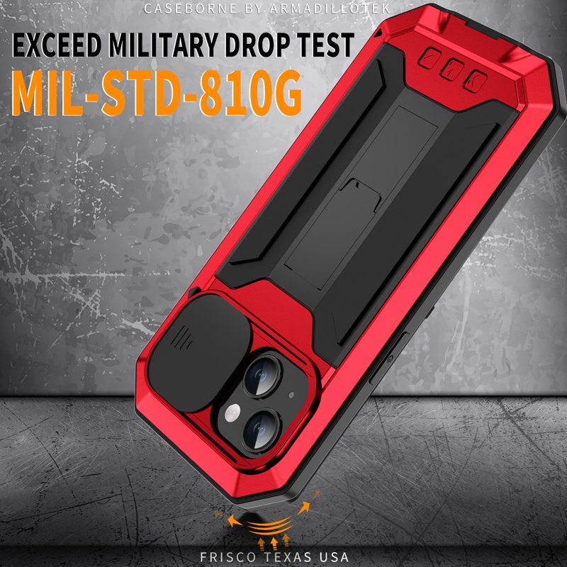 R-JUST iPhone 15 Plus Skal med Kickstand Röd Silicone+Metal+Plast