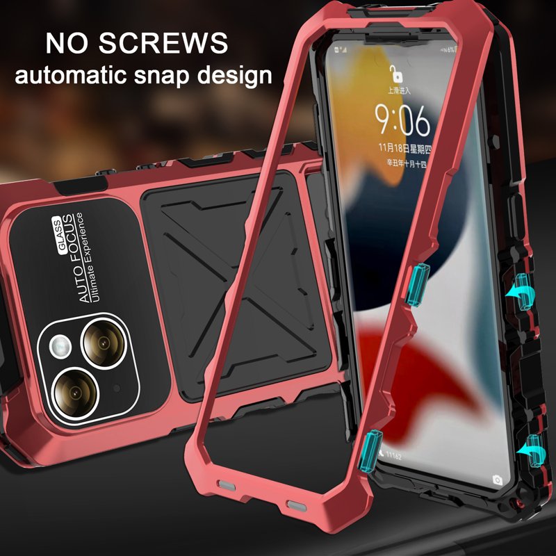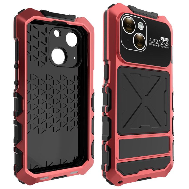 R-JUST iPhone 15 Plus Skal Shockproof Silikon + Metall Röd