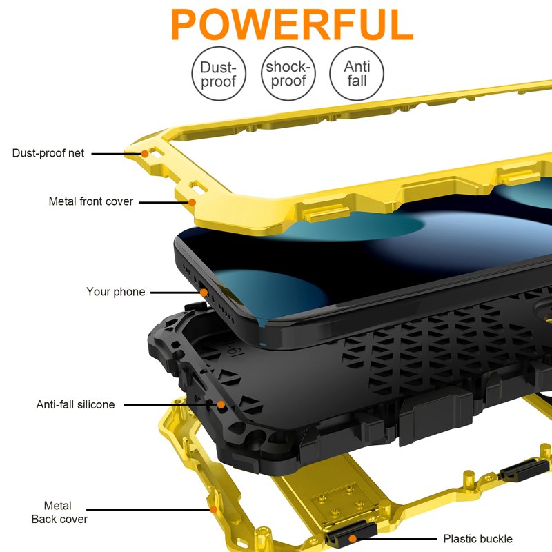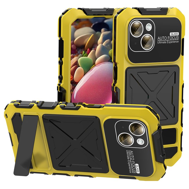 R-JUST iPhone 15 Plus Skal Stöttålig Silikon+Metall Gul