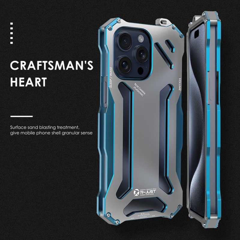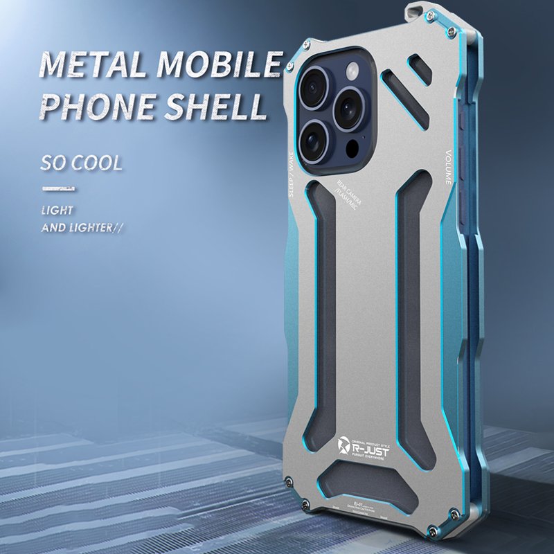 R-JUST iPhone 15 Pro Max Skal erbjuder ett stilrent och robust skydd för din telefon. Tillverkat av högkvalitativ aluminiumlegering, ger det både elegans och hållbarhet. Den innovativa designen säkerställer effektiv värmeavledning och skyddar din enhet mot repor och fallskador.