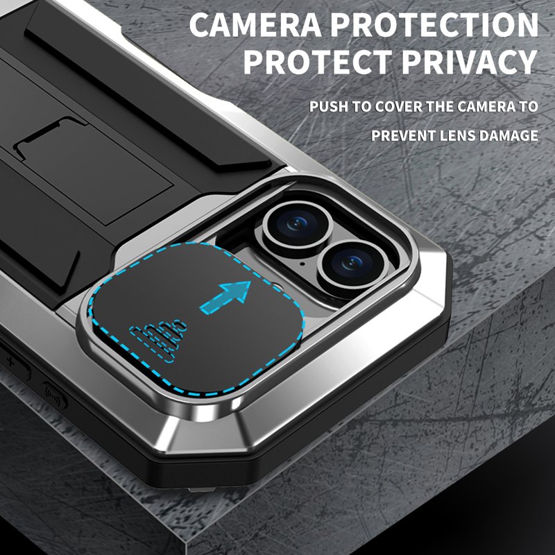 R-JUST iPhone 16 Plus Kickstand Skal Silikon+Metal+PC Silver