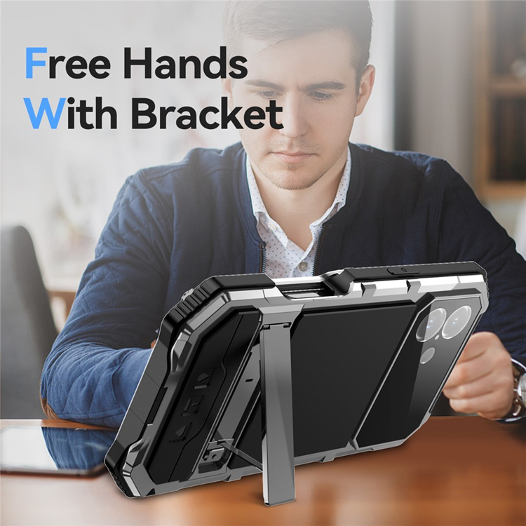 R-JUST iPhone 16 Plus Mobilskal med Härdat Glas Kickstand PC + Silikon + Metall - Silver