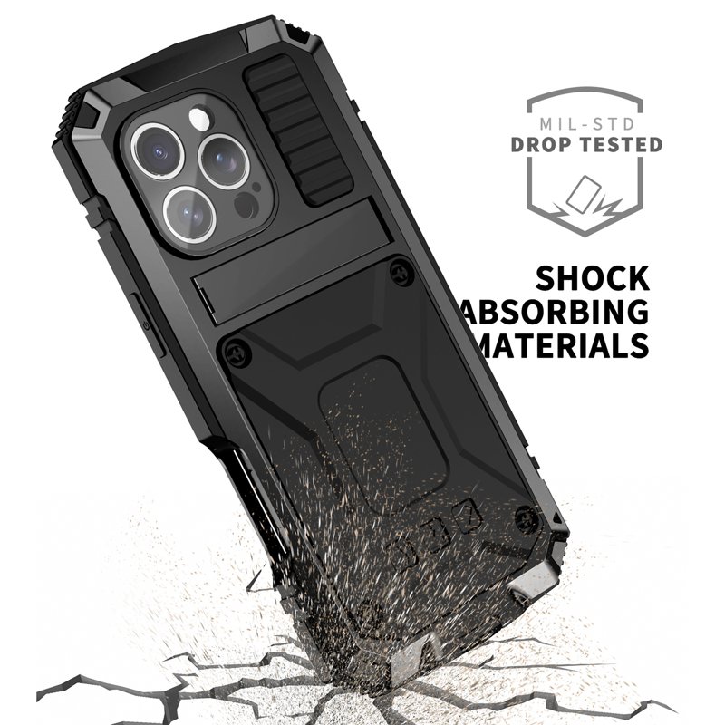 R-JUST iPhone 16 Pro Max Skal PC+Silicone+Metal Kickstand Svart
