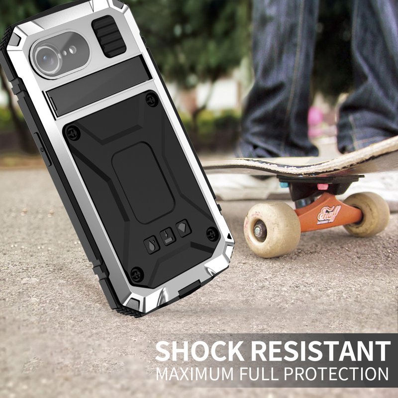 R-JUST iPhone 16e Skal erbjuder en kombination av stil och skydd. Med en hållbar konstruktion av PC, silikon och metall skyddar det din telefon mot stötar och repor. Perfekt för den aktiva användaren som vill ha både funktion och design.
