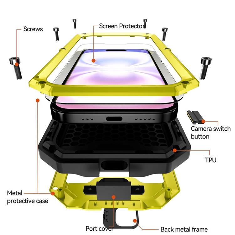 R-JUST iPhone 17 Mobilskal Med Härdad Glas PC + Silikon + Metall - Gul