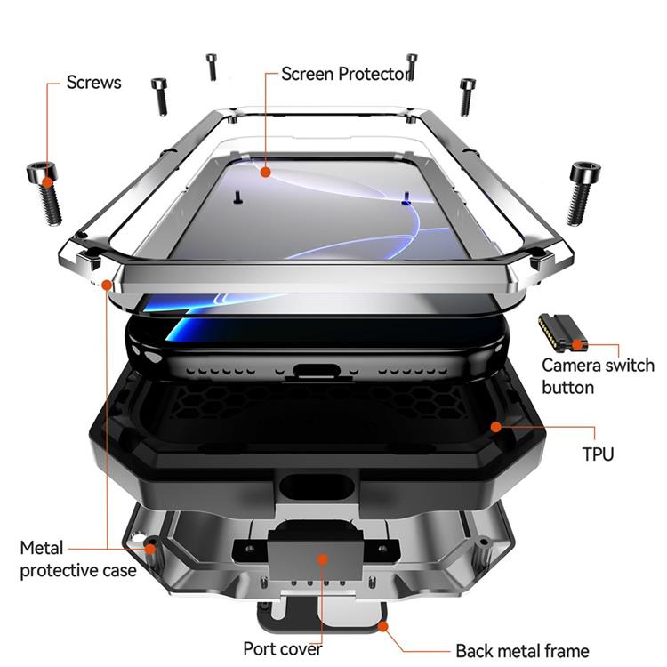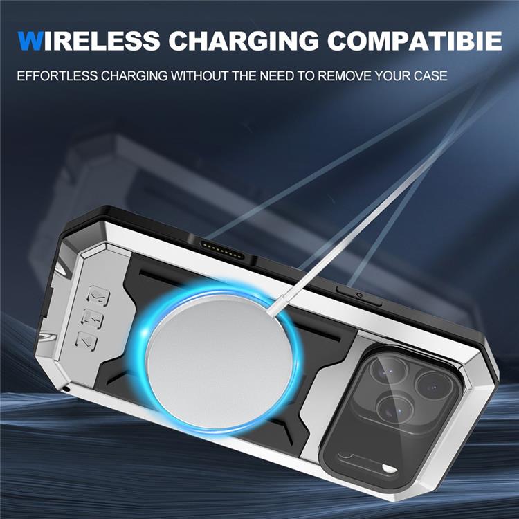 R-JUST iPhone 17 Pro Max Mobilskal Med Härdad Glas PC + Silikon + Metall - Silver
