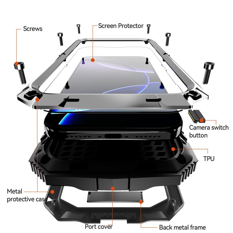 - Integrerat skärmskydd - Frontmetallskal med inbyggt skärmskydd för fullständig täckning.