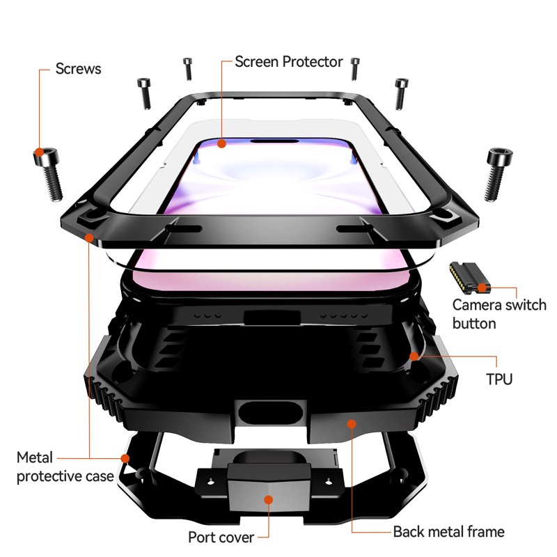 • Hållbar konstruktion - Tillverkat av PC, silikon, härdat glas och metall för långvarigt skydd i alla miljöer.