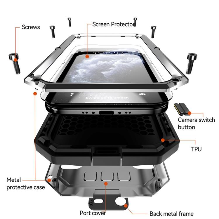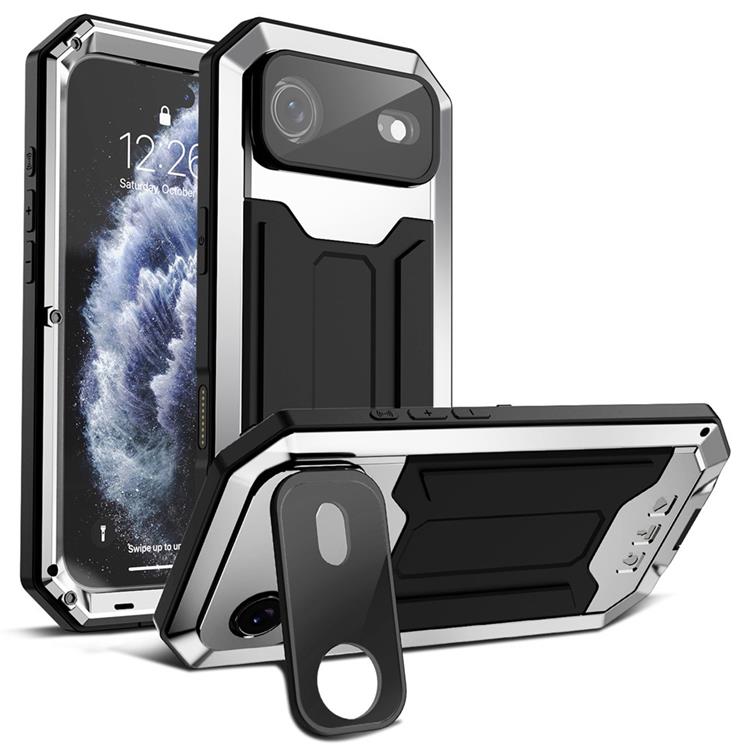 R-JUST iPhone Air Mobilskal Med Härdad GlasPC + Silikon + Metall - Silver