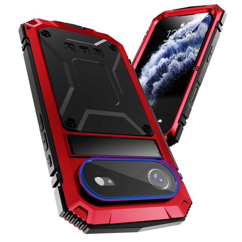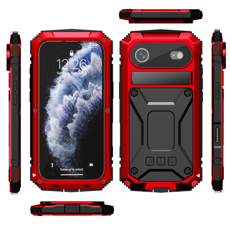 R-JUST iPhone Air Skal PC + Silikon + Metall Ställ - Röd