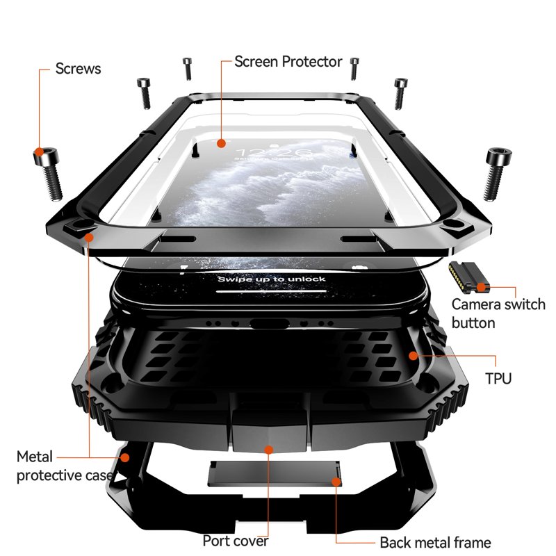 - Integrerat skärmskydd - Frontmetallskal med inbyggt skärmskydd för fullständig täckning.