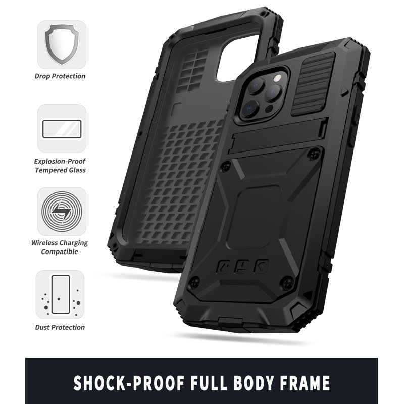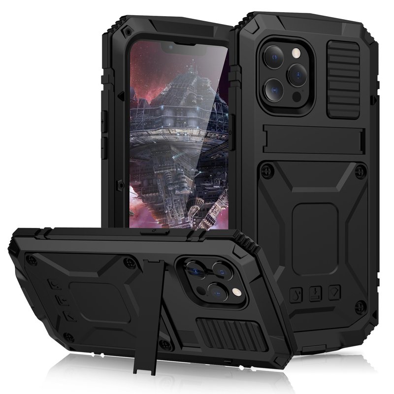 R-JUST Kickstand iPhone 13 Pro Skal Metall Shockproof Svart
