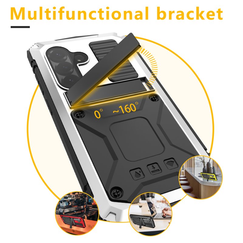 Material: PC, silicone, tempered glass, metal