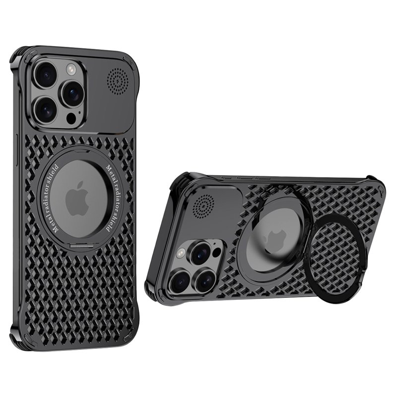 R-JUST RJ64 iPhone 14 Pro Skal Aluminium Svart Med Ställning