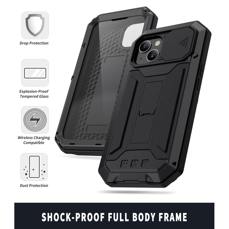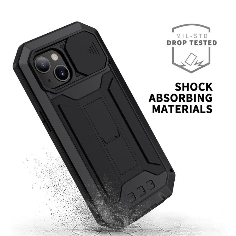 R-JUST Slide Camera Cover är det perfekta skyddet för din iPhone 13. Med en kombination av hållbara material erbjuder detta skal överlägset skydd mot stötar, vatten och damm. Den smarta designen inkluderar en dold kickstand för handsfree-visning och en inbyggd skärmskydd av härdat glas.