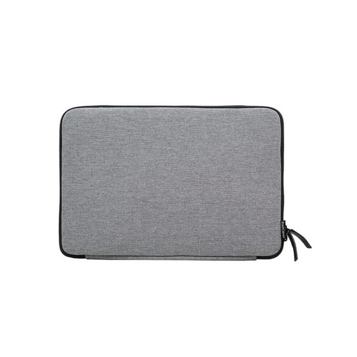 Fodralet är tillverkad av snyggt, melerat grått tyg i polyester för den smarta och avslappnade looken. Den har svart neopren inuti, samt resår i vart och ett av de 4 hörnen för att fästa fodralet på din dator.