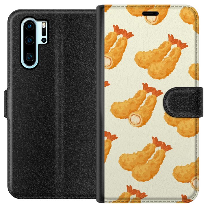 Plånboksfodral för P30 Pro med Räkor -design. Fodralet kombinerar stil och funktion – ett slitstarkt mobilskal som skyddar mot repor och stötar samt praktiska kortfack på insidan.