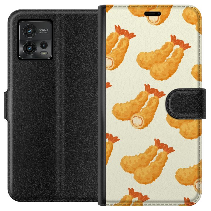 Plånboksfodral för Moto G72 med Räkor -design. Fodralet kombinerar stil och funktion – ett slitstarkt mobilskal som skyddar mot repor och stötar samt praktiska kortfack på insidan.