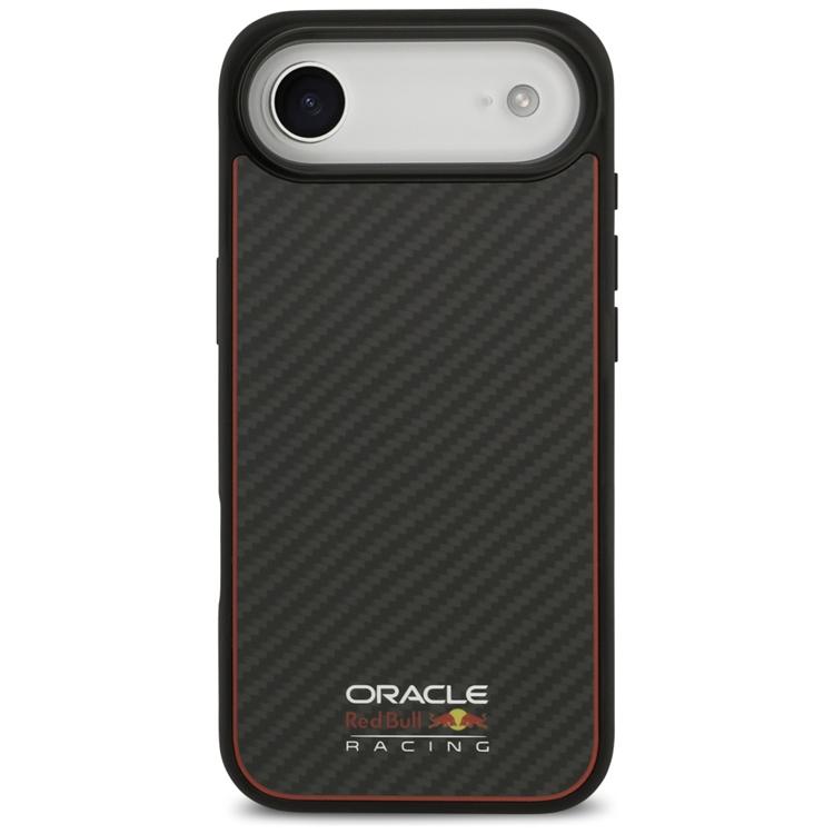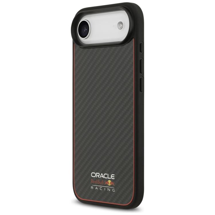 Skalets matta Kevlar-textur kombineras med en röd ram, svart kameralist och subtila knappar i metall-look för en sportig men elegant känsla. Den ikoniska Oracle Red Bull Racing-logotypen på baksidan bekräftar att detta är en officiellt licensierad produkt – byggd för prestanda, varje dag.