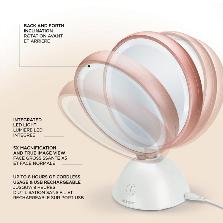 Revlon® Ultimate Glow Beauty Mirror är det perfekta verktyget för en smidig och professionell skönhetsrutin – oavsett om du är hemma eller på språng. Med sin eleganta, kompakta och helt sladdlösa design är spegeln både praktisk och stilren, samtidigt som den ger precisionsbelysning för perfekt makeup varje gång.