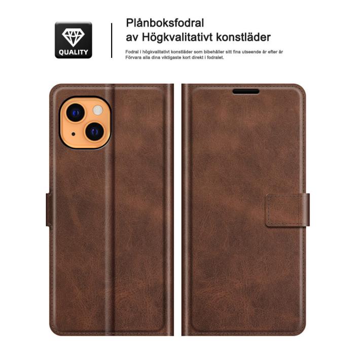 Detta plånboksfodral till iPhone 13 Mni har tillverkats av högkvalitativa material och är både stilrent och hållbart. Plånboksfodralet är specialtillverkat för just en iPhone 13 Mni, så du behöver inte oroa dig för att det inte ska passa. Med ett plånboksfodral slipper du hålla reda på telefonfodral och plånbok, för plånboksfodralet fyller båda behoven på en gång.