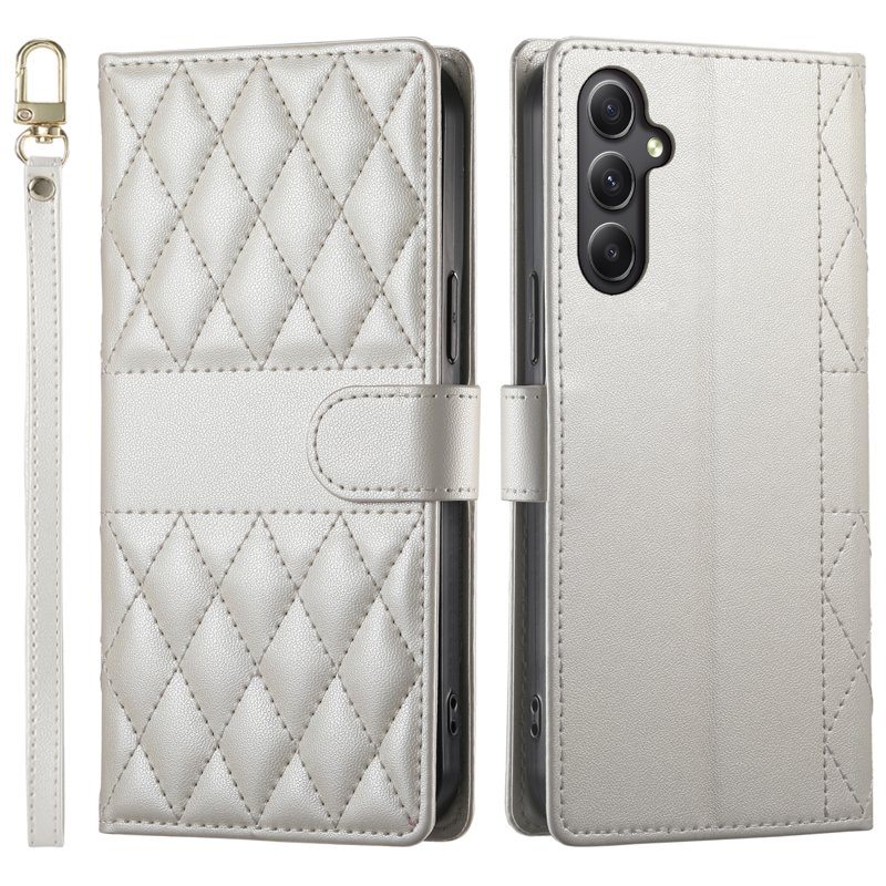 Skydda din Samsung Galaxy A35 5G med detta eleganta Rhombus Stitching Wallet Stand Leather Phone Cover. Denna plånboksfodral kombinerar stil och funktionalitet. Med flera kortfack och en praktisk ståfunktion är detta fodral perfekt för den moderna användaren.
