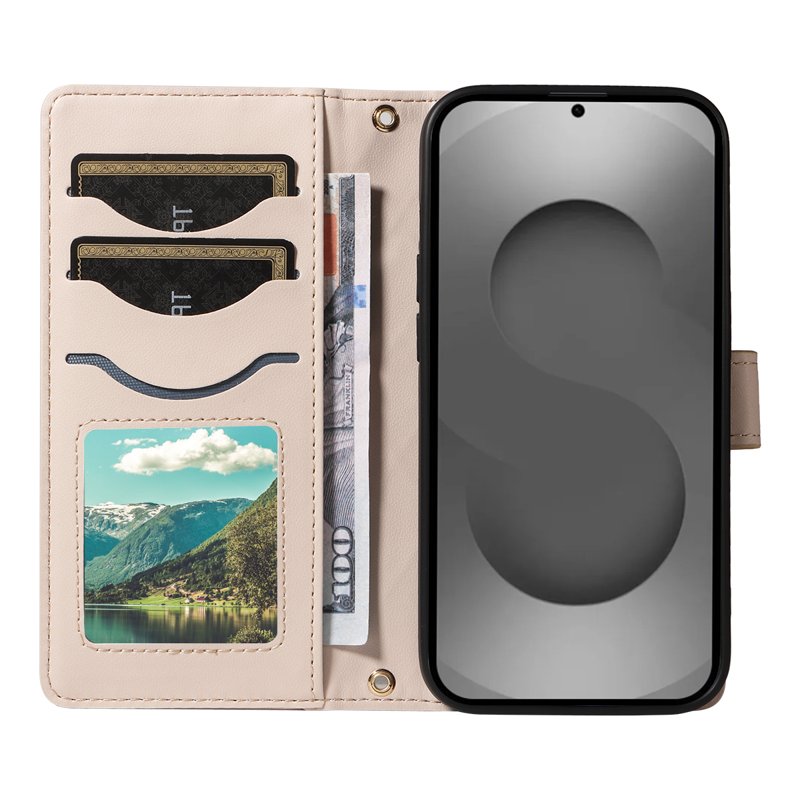 Samsung Galaxy S26 Ultra Wallet Case Rhombus Leather Phone Cover med rem är den perfekta lösningen för att skydda din telefon. Den kombinerar stil och funktionalitet med högkvalitativa material. Med flera kortfack och en praktisk ståfunktion är detta fodral både elegant och praktiskt.