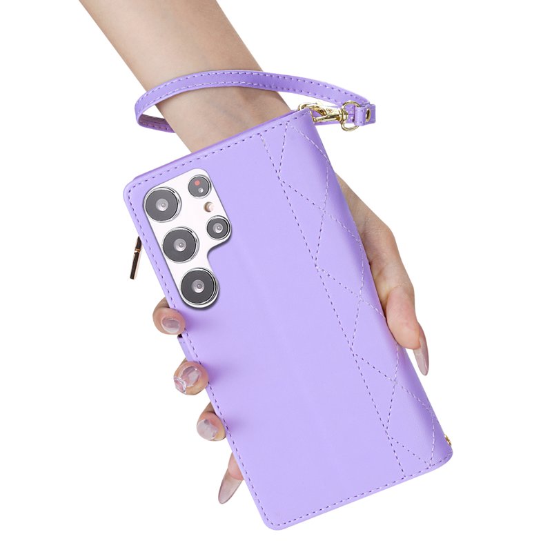 Skydda din Samsung Galaxy S26 Ultra med detta eleganta Rhombus Stitching Leather Wallet Phone Cover. Den ljuslila designen kombinerar stil med funktionalitet. Med flera kortfack och en säker stängning är detta fodral perfekt för den moderna användaren som värdesätter både skydd och bekvämlighet.