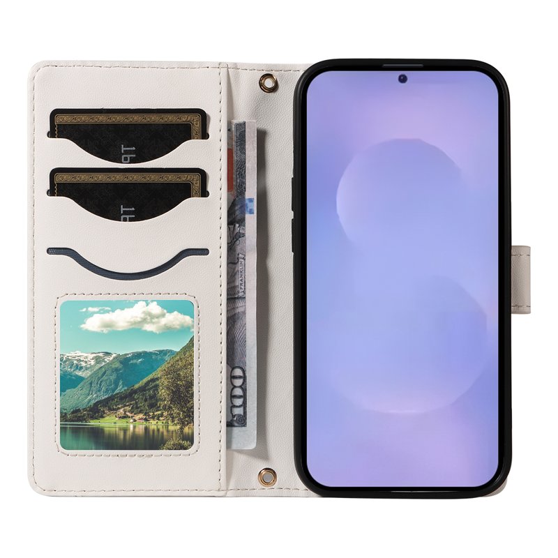 Samsung Galaxy S26+ Wallet Case Rhombus Leather är en stilren och funktionell telefonfodral i vitt. Tillverkat av högkvalitativt TPU och PU-läder, erbjuder det både skydd och elegans. Med praktiska kortfack och en kontantficka är detta fodral perfekt för den moderna användaren som vill ha allt samlat på ett ställe.
