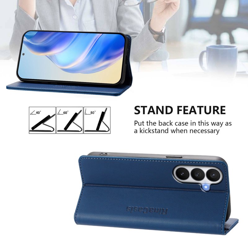 Skydda din Samsung Galaxy S26 eller S26 Pro med RINACASIS RC01 läderfodral. Detta eleganta fodral i mörkblått kombinerar stil med funktionalitet. Med RFID-blockering och en praktisk ståfunktion är det det perfekta valet för den moderna användaren.