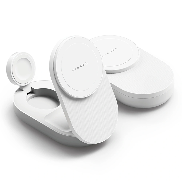 RINGKE QI2.2 25W 3-i-1 är den perfekta laddaren för dig som vill ha snabb, säker och stilren trådlös laddning för alla dina Apple-enheter – hemma, på jobbet och på resande fot.