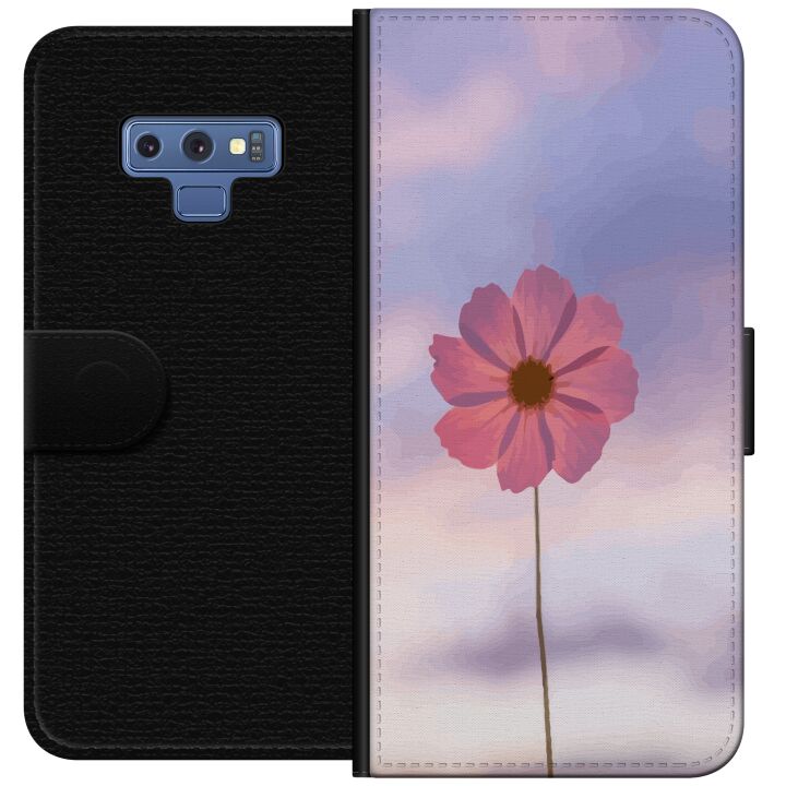 Plånboksfodral för Galaxy Note9 med Rosa blomma -design. Fodralet kombinerar stil och funktion – ett slitstarkt mobilskal som skyddar mot repor och stötar samt praktiska kortfack på insidan.