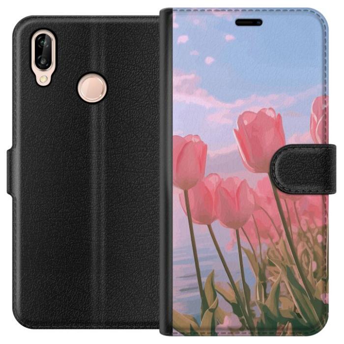 Plånboksfodral för P20 lite med Rosa Tulpaner -design. Fodralet kombinerar stil och funktion – ett slitstarkt mobilskal som skyddar mot repor och stötar samt praktiska kortfack på insidan.